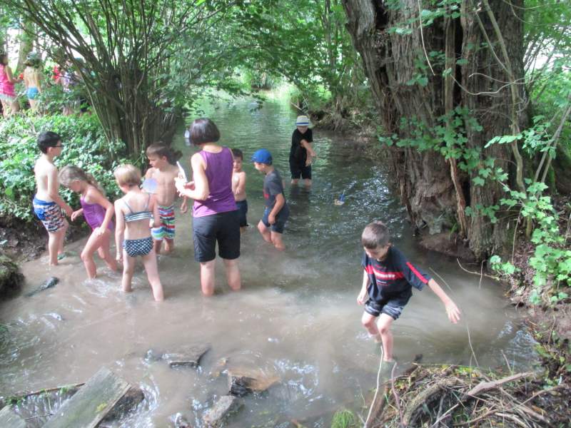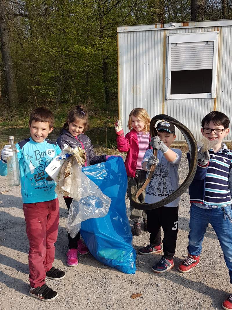 Gleich am Donnerstag stand der nächste Programmpunkt an: 40 Erstklässler, ausgestattet mit gutem Schuhwerk, wetterfester Kleidung und Eimern,