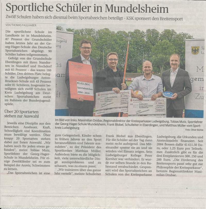 Sie haben alle dazu beigetragen, dass wir im Landkreis zu den drei sportlichsten Schulen gehören, wofür